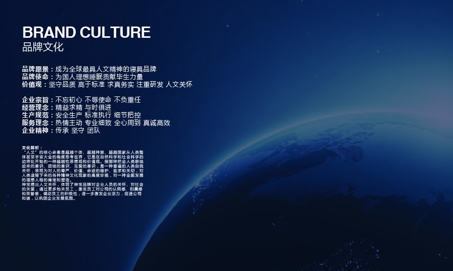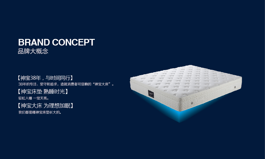 神宝品牌重视人文关怀,公司本着:“为国人理想睡眠贡献毕生力量”的使命,坚守高品质,不断创新,定位为浅睡眠人群提供熟睡体验,专利研发全球独享核心技术“吸音安睡系统”,从接触层到支撑层为浅睡人群提供静音体验,抗干扰,更熟睡!未来,神宝品牌会融合互联网思维,注重产品研发和技术创新,把用户体验做到极致!