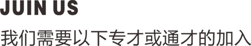 首先请留意上面的招聘信息是否有适合 你的职位,详细阅读职位要求并向我们 发送你的个人简历和相关作品,我们将 安排专人审评您的应聘邮件,通过对简 历进行筛选进入一下流程: