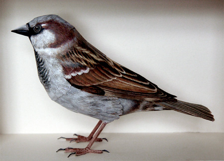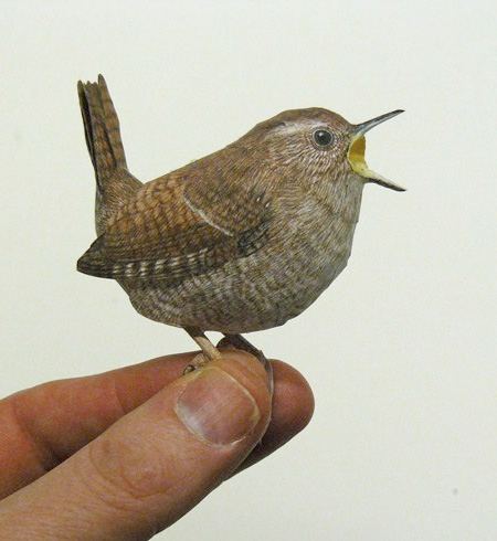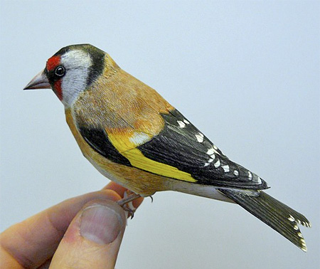 由才华横溢的荷兰艺术家约翰·舍夫特用纸创作的逼真的鸟。三维模型被涂上颜色,看起来像真正的鸟。